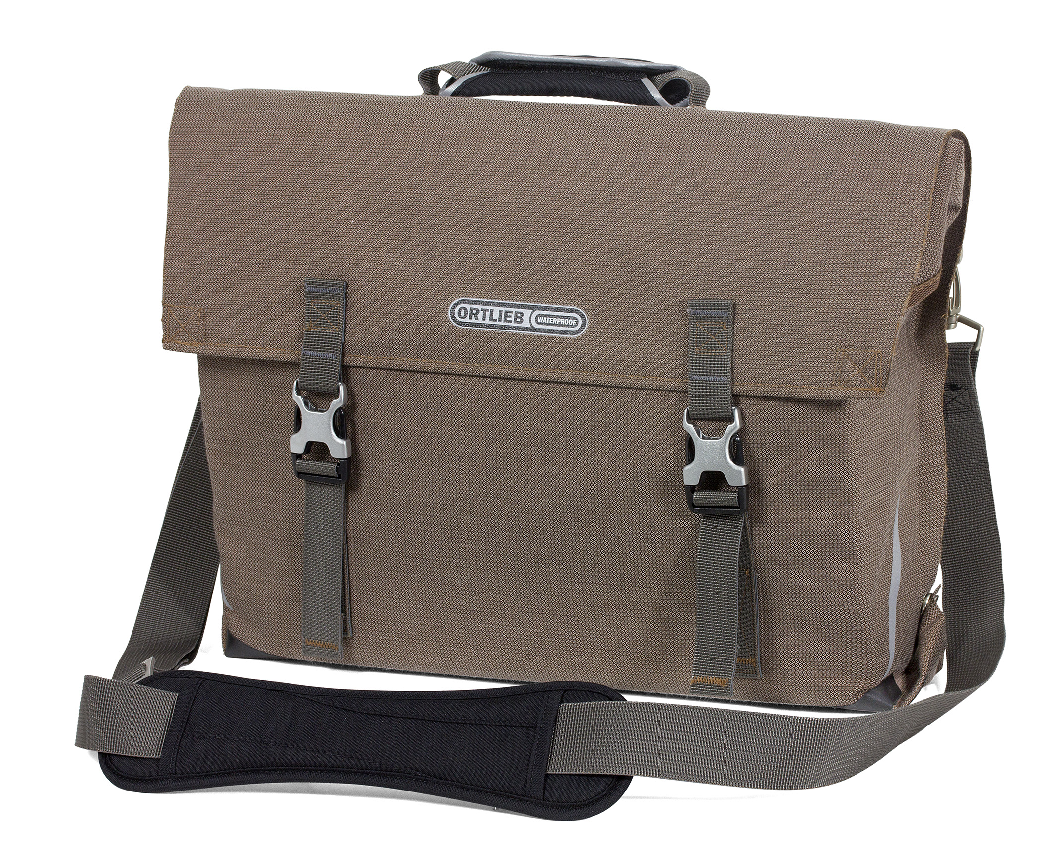The fabric is PU laminated cordura cotton blend. It comes in two colors Coffee or Pepper. Just like any Ortlieb bag, the material is 100% waterproof. And for the first time ever the Back-Roller Urban is being sold as a single pannier (to be easily paired with the commuter bag).